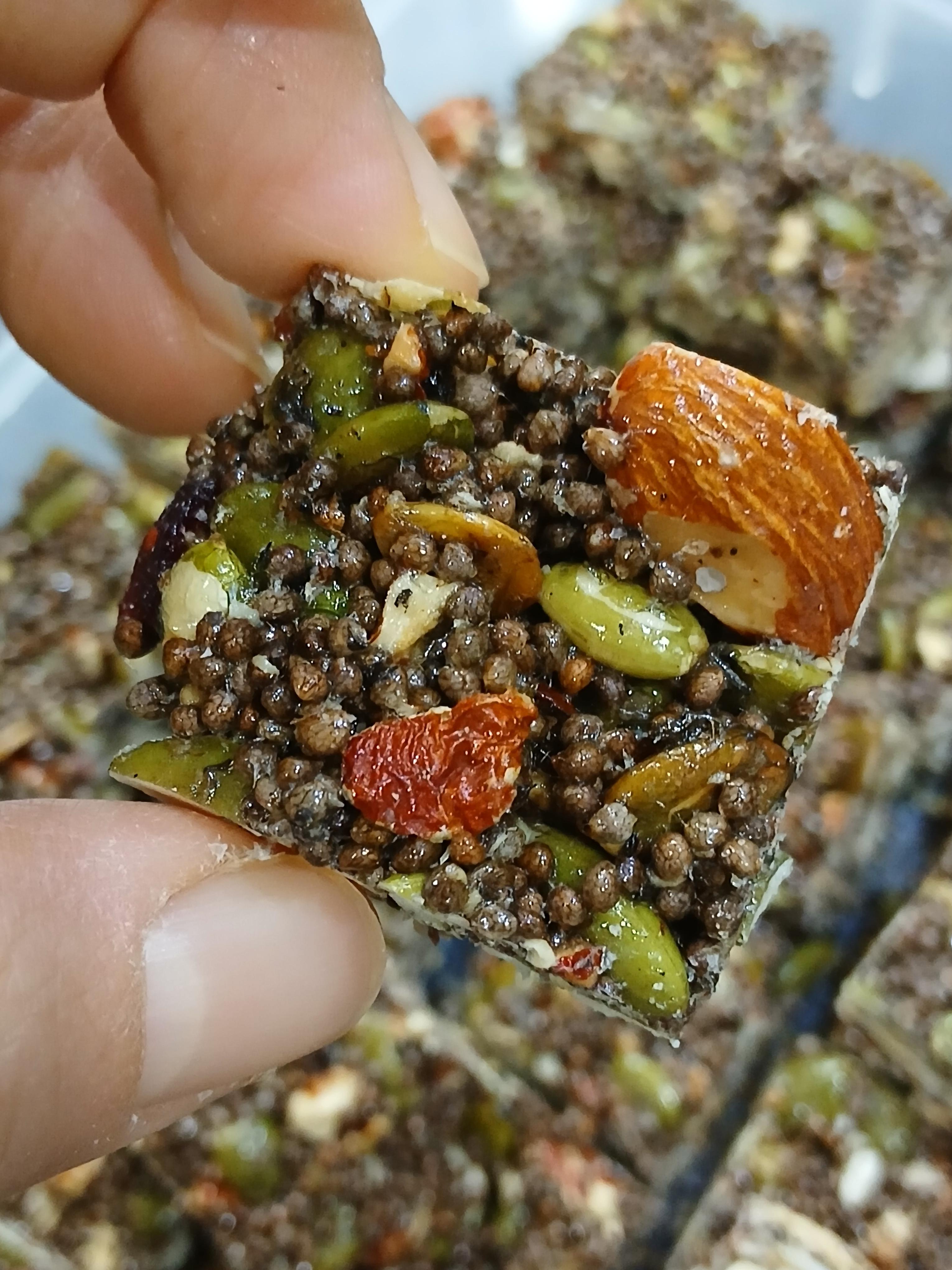 3. 들깨 + 견과류 한컵반에 조청 6~7 스푼 사용